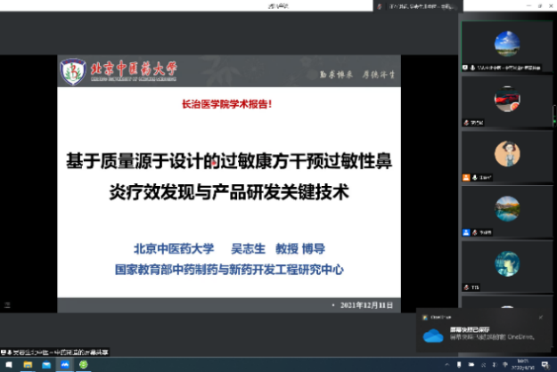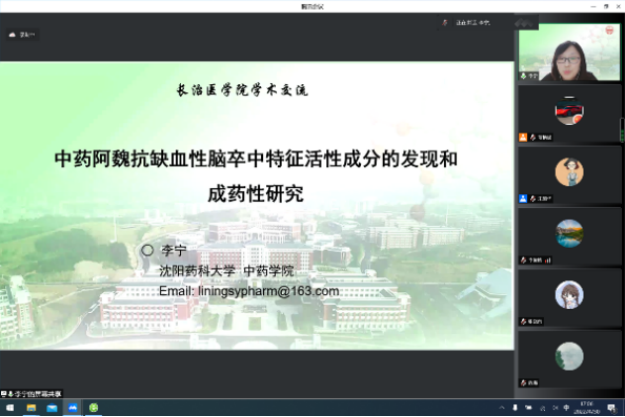 为了推动封闭管理期间的科研工作,做到停工不停研。4月30日,药学系邀请天津南开医院副院长吴雄志教授、北京中医药大学“优青”项目获得者吴志生研究员、沈阳药科大学中药学院副院长李宁教授分别作了题为“乳腺癌的中医内分泌治疗”“质量源于设计的过敏康方干预过敏性鼻炎疗效发现与产品研发关键技术”“中药阿魏抗缺血性脑卒中特征活性成分的发现和成药性研究”的学术报告。校党委常委、副校长郑金平,药学系党政领导及师生近300人参加了线上学术报告会,会议由系主任宋丽华主持。